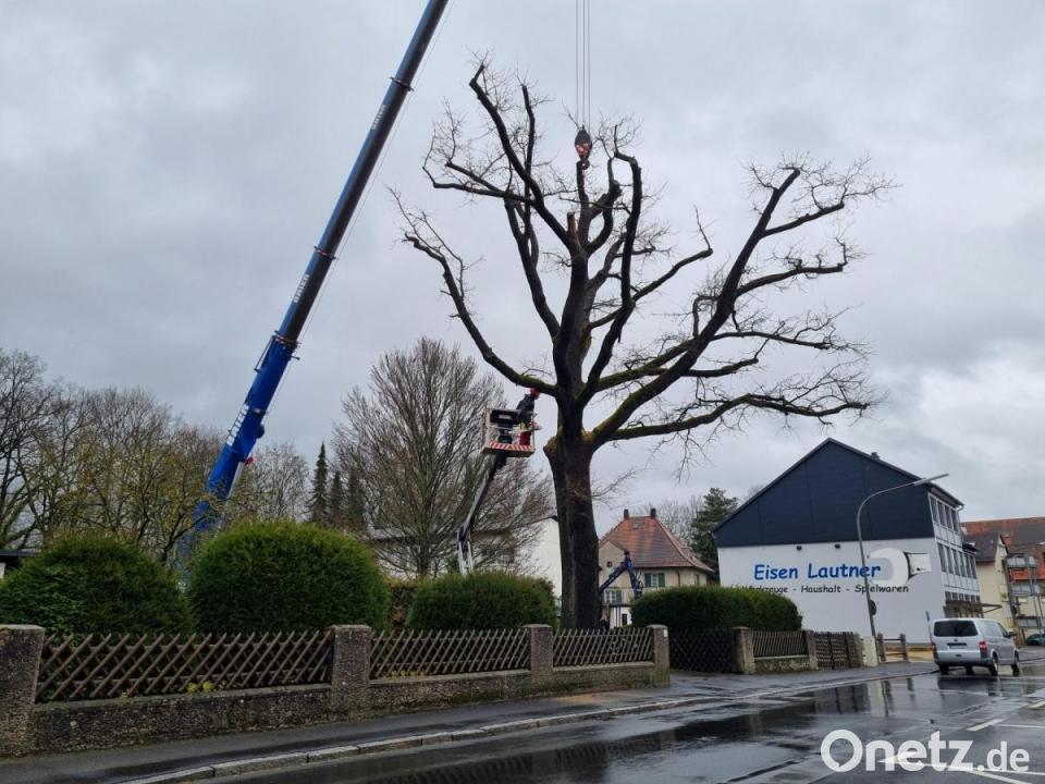 Seit etwa 200 Jahren wächst auf dem Grundstück der Familien Lautner und Lorenz eine Eiche. Ein markanter Baum, der nun am Freitagvormittag von einer Fachfirma gefällt wurde. "Die Stimmung in der Familie ist natürlich sehr betrübt", sagt Matthias Lorenz. Schweren Herzens habe man diese Entscheidung getroffen, aber es ging eben nicht mehr anders. Die alte Eiche auf dem "Fichtl-Grundstück" ist von einem Pilz befallen, Wassermangel und Trockenheit setzten dem Baum zu. Noch vor ein paar Jahren sei das Blätterdach so dicht gewesen, dass man vom Himmel nichts mehr sehen konnte, erinnert sich der Eigentümer. Nach Rücksprache mit Förster Martin Wittmann entschied man sich aus sicherheitstechnischen Gründen dafür, den Baum zu fällen. "Durch die immer stärker werdenden Wetterextreme, wird die Gefahr einfach zu groß", sagt Matthias Lorenz, auch mit Blick auf die angrenzende Hauptstraße und die Kindertagesstätte auf der gegenüberliegenden Straßenseite. Für die Zeit der Baumfällarbeiten wurde die Wunsiedler Straße, von 7 bis 15 Uhr, für den Verkehr gesperrt. Dies erfolgte in Absprache mit der Stadt Kemnath.