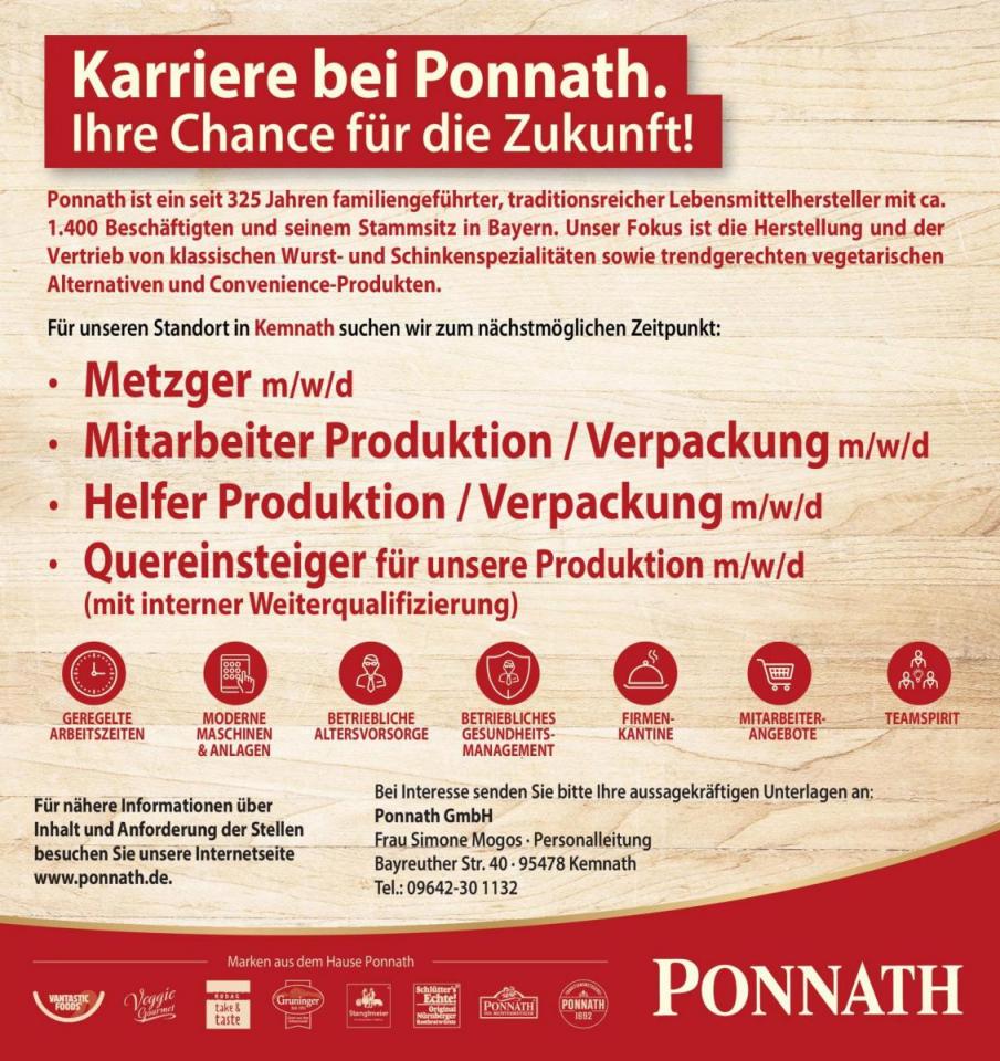 In der dritten und letzten Folge unserer dreiteiligen Serie über Ponnath DIE MEISTER-METZGER kommen zwei Mitarbeiter zu Wort, die ihre Chance zur Weiterentwicklung erfolgreich genutzt haben: Yvonne Noa-Raß, mit Unterbrechung seit 2003 im Unternehmen und mittlerweile als Schichtführerin in der Verpackung tätig, und Patrick Plaß, seit 2009 bei Ponnath und seit vier Jahren als Abteilungsleiter in der Füllerei beschäftigt.