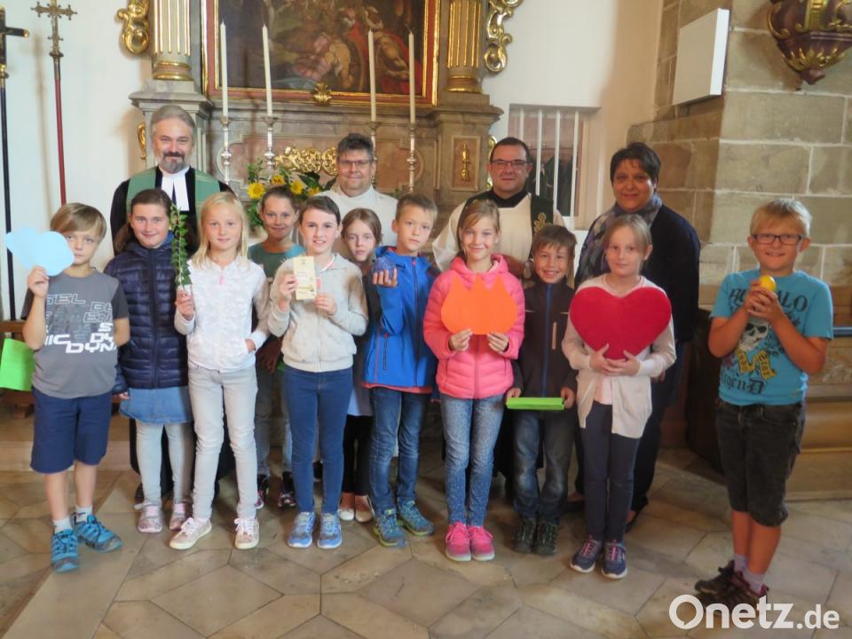 Mit symbolischen Gaben drückten sieben Schüler ihre Wünsche für das neue Schuljahr aus. Vor den Volksaltar legten sie ein rotes Herz (Liebe), eine orangefarbene Flamme (Begeisterung), eine gelbe Zitrone (unangenehme Momente), einen grünen Zweig (Hoffnung), eine hellblaue Wolke (Freizeit), ein dunkelblaues Band (Verbindung zu neuen Freunden) und eine Tafel Schokolade (Alltag versüßen). Die Messe zelebrierten die Pfarrer Konrad Amschl und Dirk Grafe. Nachdem Josef Zaglmann das Schlusslied gespielt hatte, legten sie den Erstklässlern die Hände auf und segneten sie.