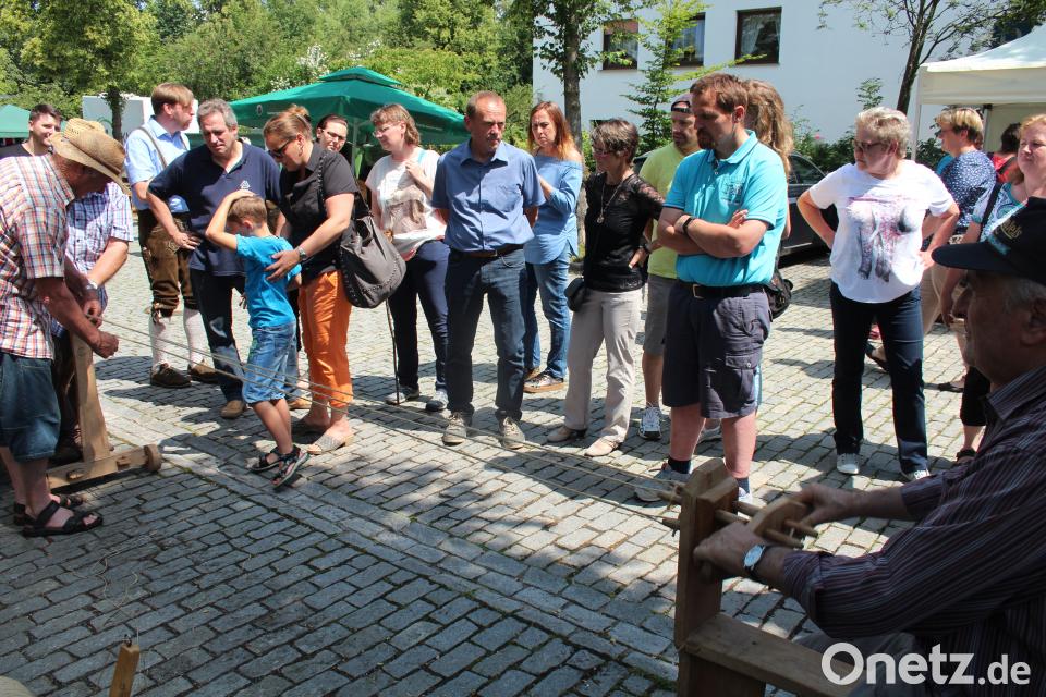 Dass der Kemnather Stadtplatz, der "Einlass" und der Parkplatz beim Eisweiher den ganzen Tag über so gut gefüllt waren, hatte zwei Gründe: zum einen das ideale Sommerwetter, zum anderen das Angebot an etwa 70 Ständen. Ein Schwerpunkt dabei war das Kulinarische: Bisonfleisch, Straußenprodukte, Honig, Backwaren, aber auch Kräuter, Fisch- und Fleischspezialitäten, Gewürze, Liköre und Marmeladen gab es in vielen Facetten. Ebenso konnten sich die gastronomischen Betriebe der Stadt nicht über mangelnden Besuch nicht beklagen. An allen Ecken der Stadt war auch für kreative Köpfe etwas zu entdecken - von Holzdeko über Schmuck und Häkel- sowie Strickwaren bis hin zu handgetöpferten Waren. Magnetpunkte für viele Besucher waren die Maschinenausstellung des Maschinenrings Tirschenreuth mit Vorführungen sowie die Friedenfelser Arbeitsgruppe "Historisches Brauchtum", wo unter anderem das Besenbinden und das Strickedrehen demonstriert wurden.