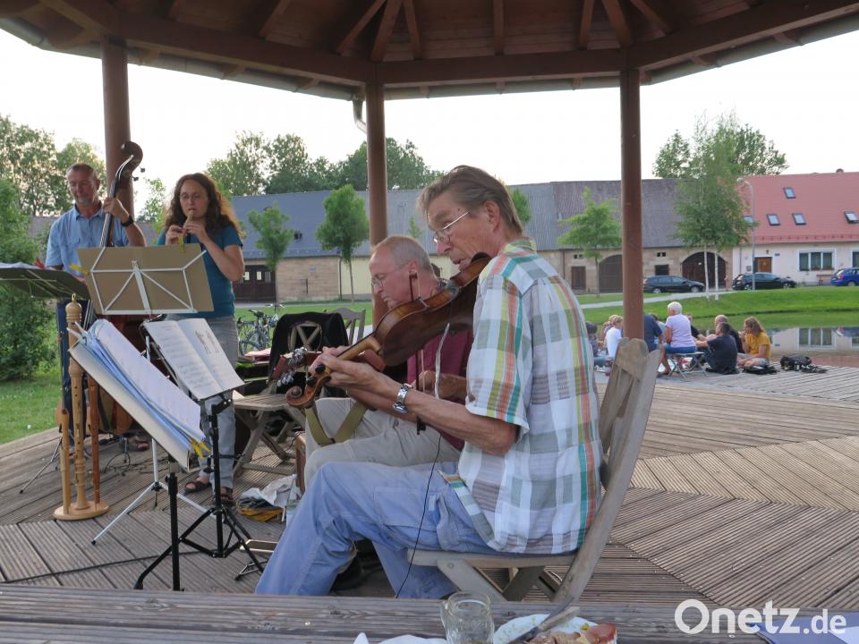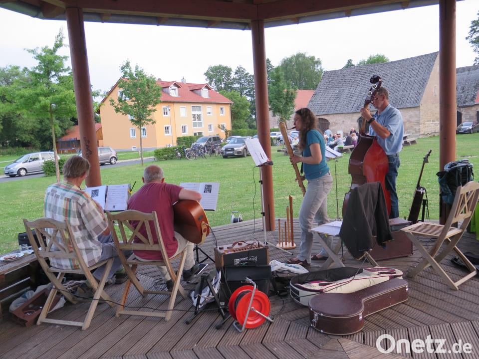 (jzk) Eine besondere Singstunde erlebten die Sänger der Liedertafel Kemnath und ihre Frauen. Die Musikgruppe KEMs mit Siegfried Zaus (Geige), Roland Amm (Gitarre und Banjo) sowie Hans Liedtke (Kontrabass und Gitarre) luden am Pavillon auf dem Eisweihergelände zu einer öffentlichen Probe ein. Das Trio, bei dem Liedtke und Amm in der Liedertafel mitsinge, hatte sich als Verstärkung Flötistin Katrin Zink hinzu geholt. Ihr Instrumentarium reichte von der kleinen Piccolo- bis zur großen Bassflöte.