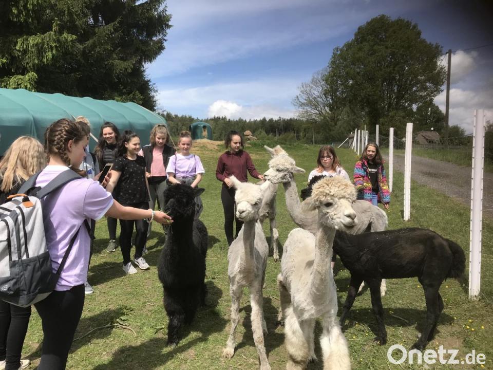 Eine Alpaka- und eine Lama-Tour unternahm Realschullehrerin Doris Jentsch mit der Ganztagesklasse 6g. Unter dem Motto "Tierisches Erlebnis" erlebten sie auf der Straußenfarm etwas Besonderes. Auf dem Mitterhof in Waldsassen stellte ihnen Berta Frank ihre Tiere vor.