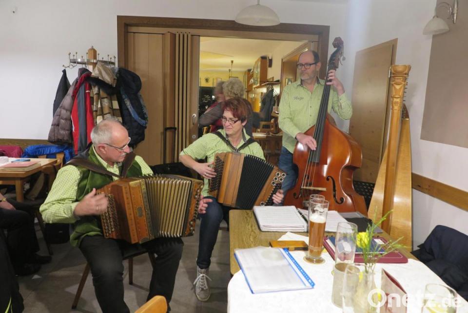 Etliche neue Musikanten lockten Herbert und Maria Storek wieder zum Treffen der Wirtshausmusikanten nach Kemnath. Da war zum einen die Wirtshauseck-Musi mit Claudia (Harfe und Steirische Harmonika) und Hugo Wittl (Kontrabass) aus Hohenburg. Hans Fröhlich (Steirische Harmonika) war aus Weiden gekommen. Sie spielten fast nur Stücke, die Hans Fröhlich komponiert hat.