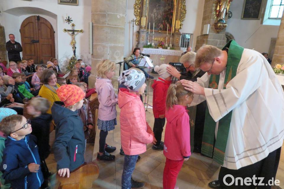 Am Anfang eines neuen Schuljahres hab man manchmal Angst, in Sackgassen zu laufen und in die Irre zu gehen, meinte Gößl. Aber niemand gehe verloren, denn Gott begleite uns immer auf unseren Wegen. Auswendig trugen die Zweit- und Viertklässler das Lied "Warum nur, warum?" vor. Christian Beck (Keyboard) und Judith Rühl (Gitarre) übernahmen die Begleitung. Nach den Fürbitten und dem Schlusslied "Laudato si" spendeten die beiden Seelsorger den Erstklässlern den Einzelsegen.
