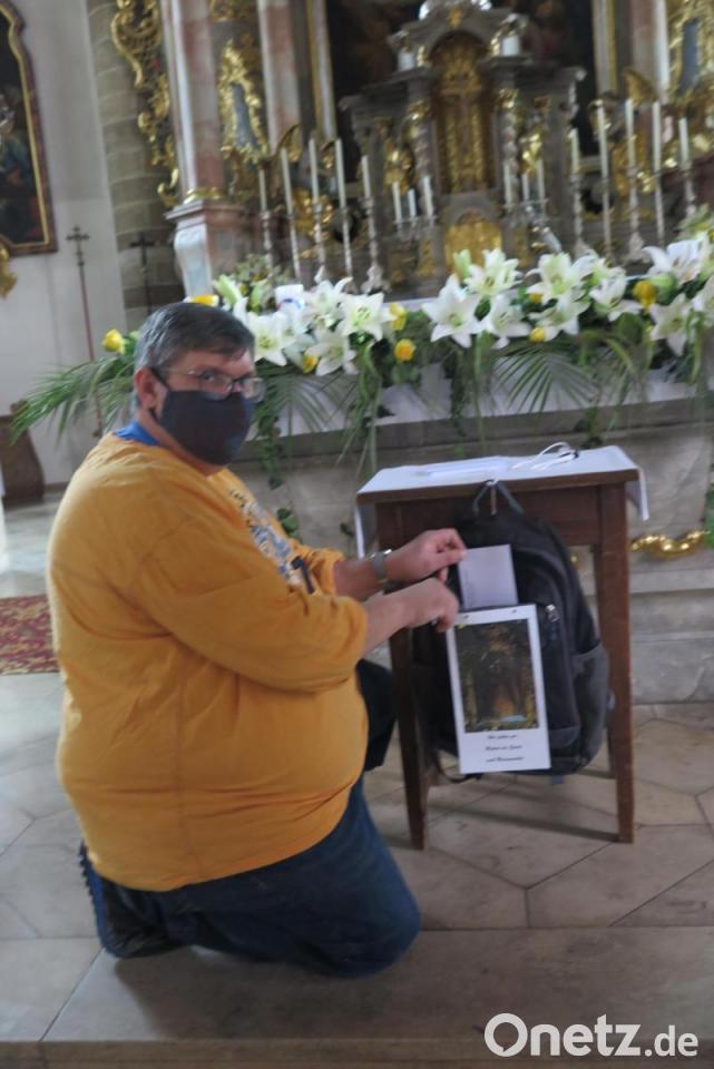 "Die Kirchenbesucher können in diesen Rucksack ein Anliegen einwerfen, das wir dann im Gebet mit in die Wallfahrtsbasilika Mariä Heimsuchung nach Marienweiher bringen", verkündete Stadtpfarrer Thomas Kraus in den Gottesdiensten. Weil wegen der Corona-Pandemie die traditionelle Wallfahrt nach Marienweiher im Juli abgesagt werden musste, wird sie am Sonntag, 24. Oktober, nachgeholt. Allerdings in einer verkürzten Form.