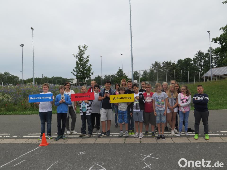 Für die Kemnather Mittelschüler starteten die Moderatoren Annette Halvorsen und André Helwig vom ADAC Nordbayern auf einem abgesperrten Platz neben dem Schulsportgelände die Aktion. Dabei konnten die Buben und Mädchen reale Verkehrssituationen handlungsorientiert erleben. Zuerst mussten sie schätzen, wie lange ein Auto nach einer Vollbremsung braucht, bis es zum Stehen kommt. Dabei stellte sich heraus, dass sie das Tempo eines herannahenden Fahrzeugs nicht richtig einschätzen können. Vielen war gar nicht bewusst, wie gefährlich es für den Fußgänger oder Radfahrer sein kann. Dann wurde der Bremsweg gemessen. Nach dieser Vorführung erklärten die beiden Moderatoren den Schulkindern, dass sich der Anhalteweg aus dem Reaktions- und Bremsweg zusammensetzt.