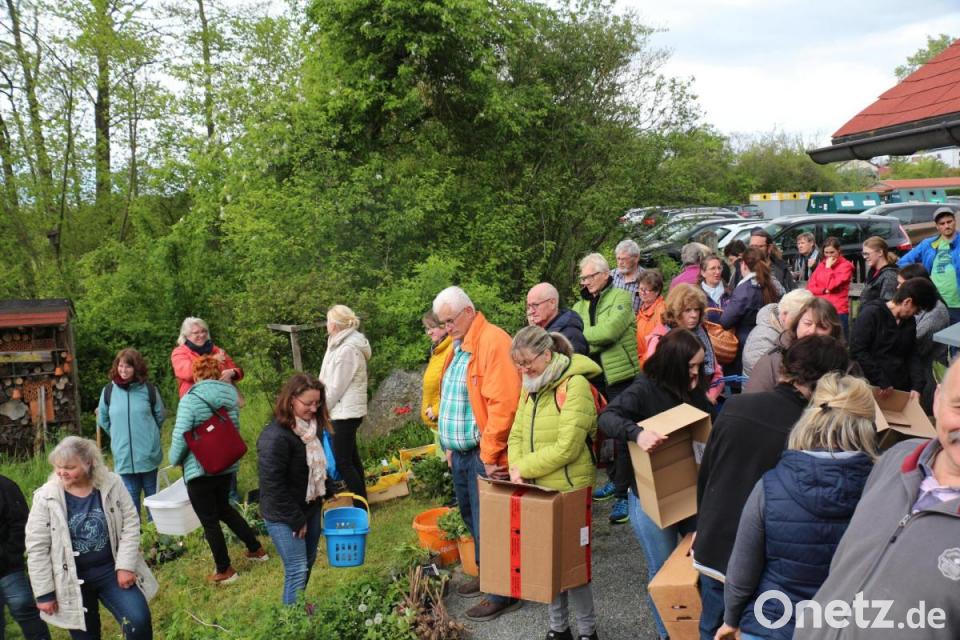 Die Pflanzentauschbörse des Obst- und Gartenbauvereins war wieder ein toller Erfolg. Die Gartler genossen auch die schöne Aussicht, die das Gelände bot. Noch vor der offiziellen Eröffnung durften Vereinsmitglieder und solche, die es vielleicht mal werden möchten, die angebotenen Pflanzen sichten. Fachkundig wurden sie dabei von den anderen Gartlern über die jeweiligen Eigenheiten aufgeklärt.