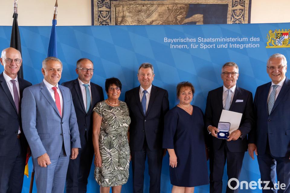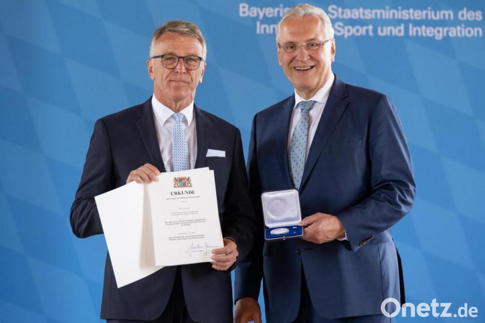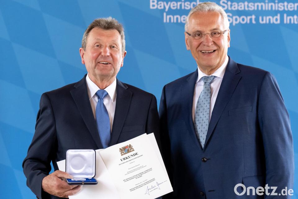 Hohe Auszeichnung für zwei Kommunalpolitiker aus dem Landkreis Tirschenreuth: Der Tirschenreuther Franz Stahl und der Kemnather Christian Baumann erhielten zusammen mit 25 anderen Geehrten aus Oberbayern, Niederbayern, Schwaben und der Oberpfalz am Montag aus Händen von Innenminister Joachim Herrmann bei einem Festakt im Schloss in Dachau eine kommunale Verdienstmedaille und eine Dankurkunde für ihr jahrzentelanges Engagement.