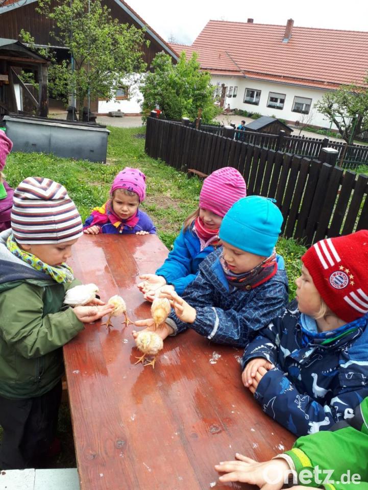 Der jährliche Besuch auf dem Bauernhof von Matthias Lorenz ist schon Tradition. Die Kinder des Waldkindergartens machten sich früh am Morgen auf den Weg von Zwergau quer durch den Wald nach Bingarten. Die Kleinen fütterten, bestaunten und streichelten Hühner, Hasen, Entenküken, Schweine und Kühe. Ein zusätzlicher Höhepunkt waren die riesigen Landmaschinen. Mit einem Rührgerät stellten die "Waldbären" aus frischer Milch Butter her. Dazu gab es Brot, Marmelade, Schnittlauch und eine Tasse Milch. Das schmeckte allen sehr gut. Der Milchhof Kemnath hat diese Brotzeit gespendet und für die Kinder noch Joghurt und Käse bereit gelegt. Mit dem Lied "Wir sind die Waldbärenzwerge" und einem kleinen Geschenk bedankten und verabschiedeten sich die Kinder bei Familie Lorenz.
