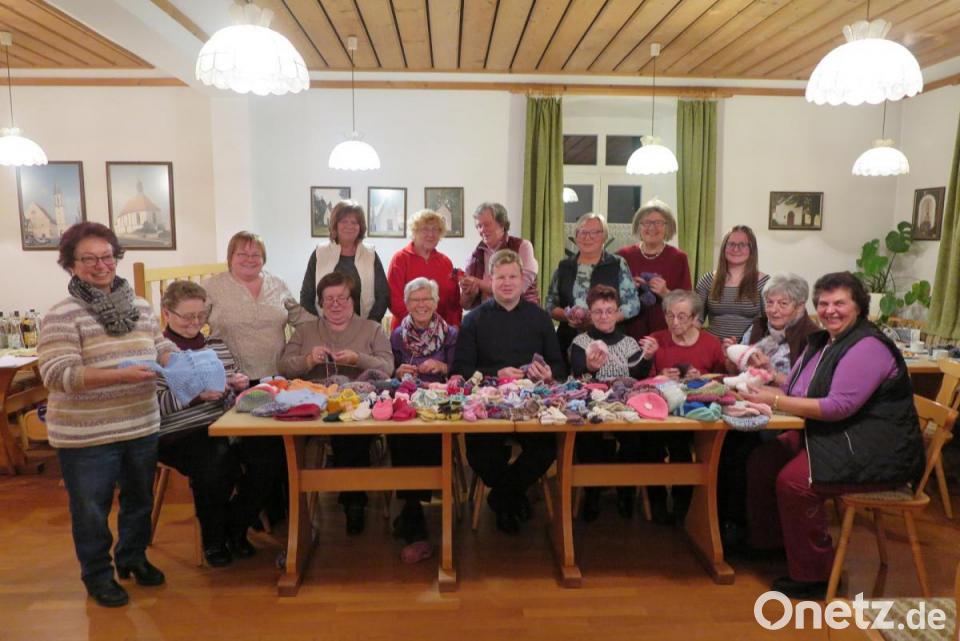 Hilde Wolf, ihre Tochter Sabine und Waltraud Erhardt, die Leiterinnen des Strickkreises "Strickliesl", und die Frauen übergaben nun 64 Mützen, 3 Jäckchen und 87 Paar Söckchen an Marianne Fütterer von der Frühförderstelle KoKi in Tirschenreuth. "Seit sieben Jahren strickt und häkelt der ganze Landkreis", freute sie sich. Die nützlichen Kleidungsstücke erhielten Eltern von der Stadt Kemnath bei den Begrüßungsaktionen für Neugeborene im Familienzentrum Mittendrin, erklärte Fütterer. Sie seien auch im Begrüßungspaket des Landkreises Tirschenreuth für jede Gemeinde enthalten. Ebenso gingen sie an die Geburtsstation in Tirschenreuth und die Frühchen-Station der Kinderklinik in Weiden, die besonders kleine Söckchen erhalte.