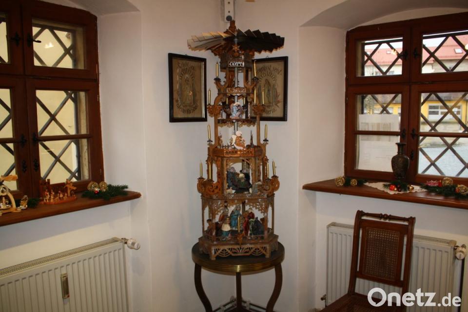 Eingerahmt wird die Präsentation der Storch’schen Zeichnungen mit Weihnachtsfotografien vergangener Zeiten und kunstvollen Notenheft-Titellithographien aus dem 19. und 20. Jahrhundert, deren liebevolle Gestaltung dem künstlerischen Anspruch der Musikwerke angemessen sein sollte. Das „Sahnehäubchen“ setzt eine 1,30 Meter hohe erzgebirgische Weihnachtspyramide, die Anton Heindl auf einem Weidener Adventsmarkt erwarb und von Heinrich Dworzak restaurieren ließ.