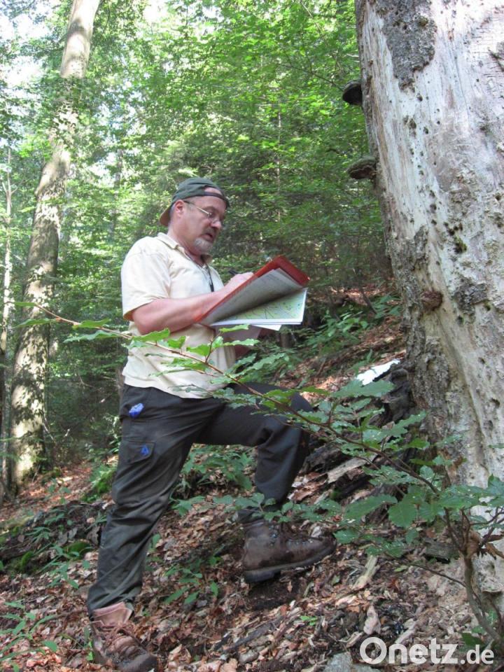 Auf der Suche nach Biotop-Bäumen wähle man natürlich nicht die schönsten und wirtschaftlich wertvollsten Bäume aus, erklärt der sehr heimatverbundene Förster mit Oberpfälzer Wurzeln und 35-jähriger Diensterfahrung. Die Wahl falle eher auf krumm gewachsene, auf schrägwüchsige Exemplare. Einen Stammdurchmesser von 40 Zentimetern müssten sie aber schon mindestens haben, betont er, lacht dann und fügt hinzu: "Halt keine Masskrugstärke."