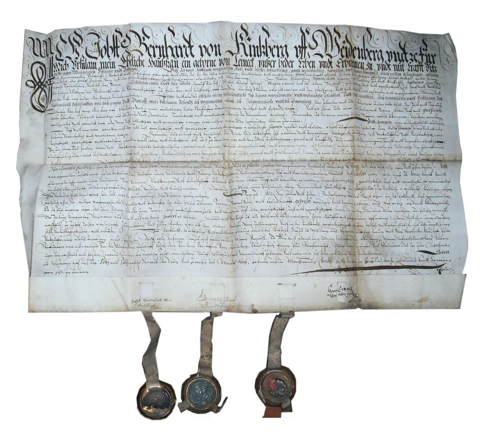 Gesiegelt wurde die Urkunde unter anderem von Jobst Bernhard von Künßberg auf Weidenberg (1581 – 1623), auch im Namen seiner Ehefrau Ursula von Laineck (etwa 1580 – 1623).