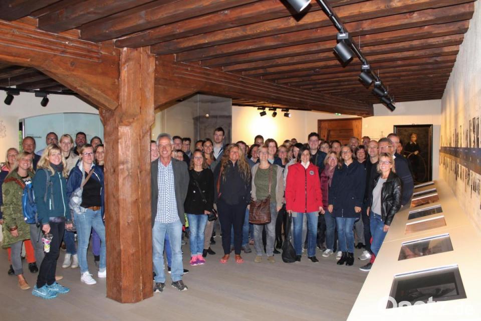 Der Rundgang für die drei Gruppen begann am oberen Eingang zur Burg, der vom Torhaus über eine Holzbrücke zu erreichen ist. Im Burghof bekamen alle einen kurzen geschichtlichen Überblick über die Geschichte der 1000 Jahre alten Anlage auf dem gewaltigen Granitkoloss, die auf der Nordseite von der Waldnaab umflutet ist. Von dort ging es zum Rittersaal mit dem Kamin und dem Familienwappen der Grafen von Schulenburg, zur Burgkapelle, zum Burgensaal, der zur Information über das Baugeschehen genutzt wird, bis in den Kapitelsaal.
