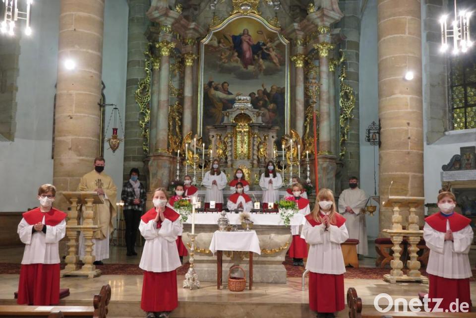 Der Geistliche, der sie in die Schar der Ministranten der Pfarrei Mariä Himmelfahrt aufnahm, war dankbar, dass sich trotz vieler Einschränkungen durch die Corona-Pandemie so viele Erstkommunionkinder bereit erklärt haben, den Ministrantendienst zu übernehmen.