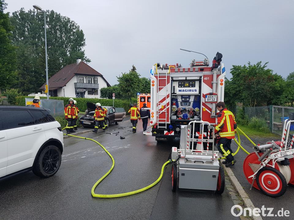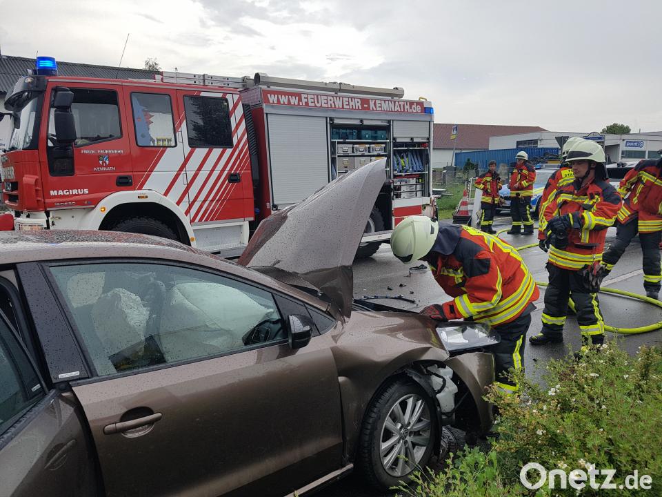 Einsatzkräfte der Kemnather Feuerwehr bauten einen Löschangriff mit einem Strahlrohr auf und kontrollierten den VW mit einer Wärmebildkamera. Sie übernahmen auch die Absicherung und Verkehrsregelung. Aufgrund möglicher auslaufender Betriebsstoffe wurden Warnschilder aufgestellt. Die 32-jährige Frau kam mit leichteren Verletzungen mit dem Rettungswagen zur weiteren Behandlung in ein Krankenhaus. Die beiden Kinder, die bei ihr im Fahrzeug saßen, wurden nach bisherigen Erkenntnissen nicht verletzt. Auch die Lenkerin des SUV sowie das mitfahrende Kind wurden nicht verletzt.