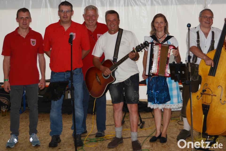 Die Musikgruppe aus Parkstein begeisterte unter anderen mit bayerisch-böhmischer Volksmusik, alten Schlagern, Stimmungsliedern und aktuellen Hits. Die Gruppe war im vergangenen Jahr beim OTV-Stammtisch in Parkstein dabei und hatte schon Auftritte beim Basalttheater. Bei einem weiteren musikalischen Abend am Samstag sorgte die Band „Zu(t)dritt“ (Markus, Tom und Werner) mit internationalen Hits und Ohrwürmern für Stimmung im voll besetzten Festzelt. Höhepunkt der Feierlichkeiten waren am Sonntag ein Kirchenzug, ein Festgottesdienst vorm Gerätehaus mit Fahrzeugweihe und Einweihung des neuen Feuerwehrhauses sowie der anschließende Festbetrieb.