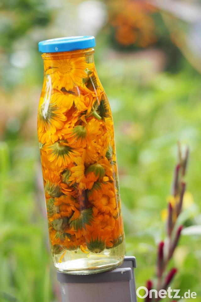 Zunächst sollten die Blüten bei Sonnenschein gezupft werden. Die Köpfe können dann auf ein sauberes Tuch gelegt werden. So haben Insekten die Möglichkeiten zu verschwinden. Ein paar Stunden kommen die Blütenköpfe in ein sauberes Schraubglas. Das wird mit Korn aufgefüllt. Dieser sollte mindestens 38 Prozent Alkohol haben. Dann wird das Glas zugeschraubt und drei Wochen stehengelassen. Einmal täglich sollte man es durchschütteln.