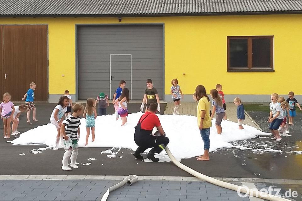 Danach gab es die lang ersehnte Schaumparty. Sogar die Kleinsten sprangen in das erfrischende Schaumbad. Nach einem Eis brachten die Helfer ihre Besucher mit dem Feuerwehrauto nach Hause. Die Betreuung hatten Kommandant Robert Maier sowie Florian Hart, Ulrike Wittmann und Tina Maier übernommen.