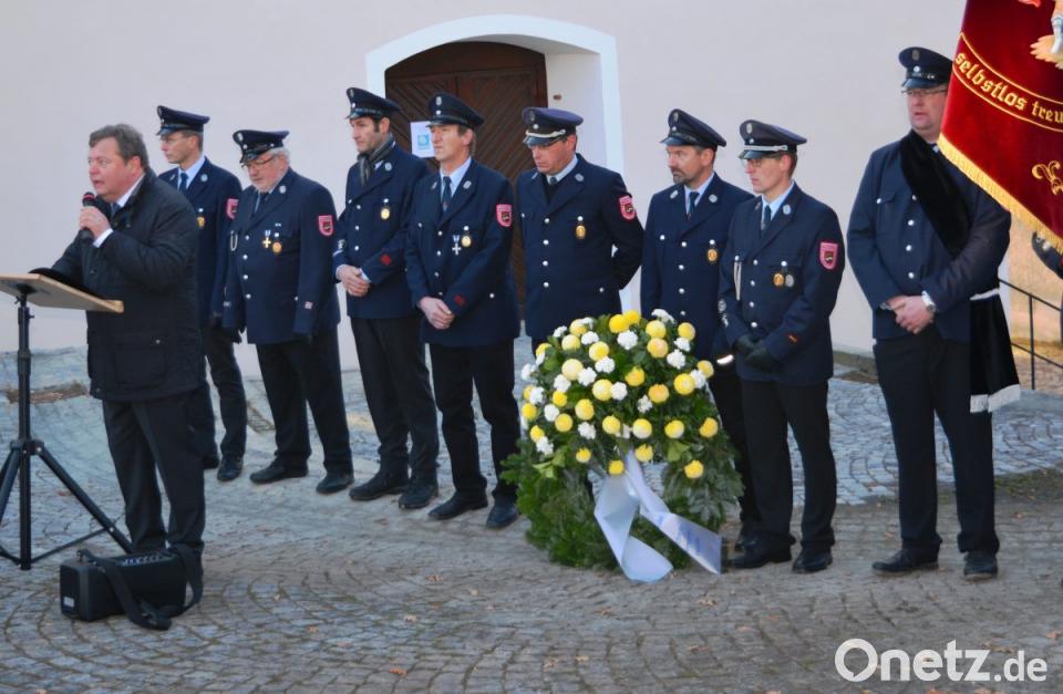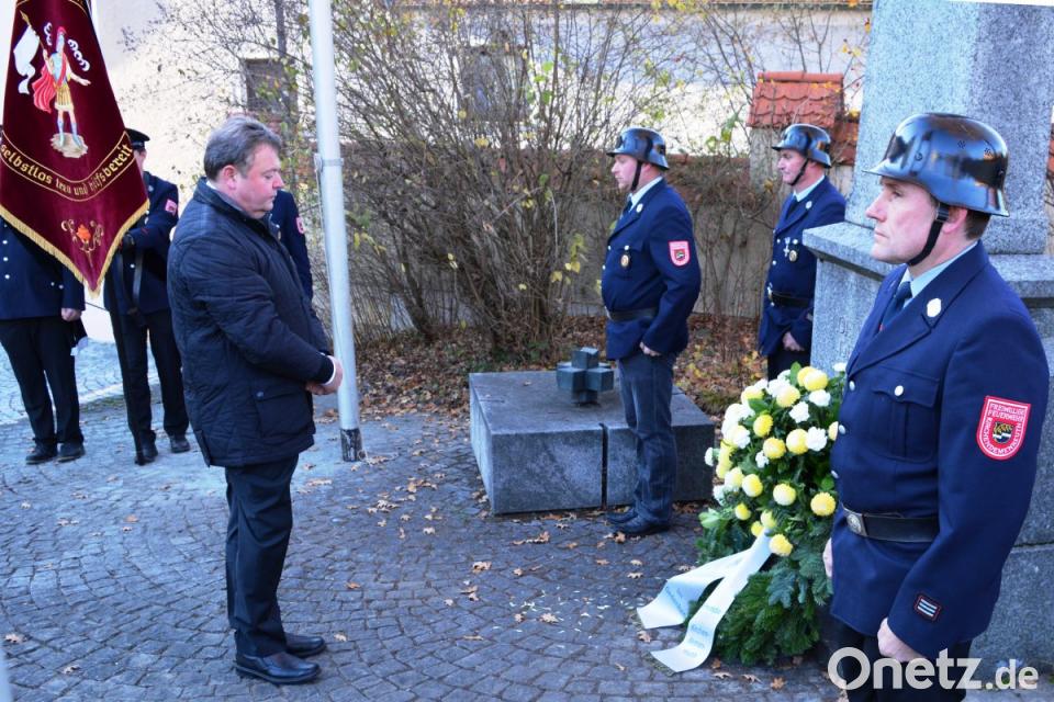 Pfarrer Manuel Sauer ging in seinen Worten ebenfalls auf den Frieden ein und er betete zusammen mit den Anwesenden um den Frieden in der Welt. Bürgermeister Kellner legte am Kriegerdenkmal einen Kranz nieder. Posaunenchor und Kirchenchor umrahmten die Gedenkfeier musikalisch. Feuerwehr und Abordnungen der Vereine wirkten ebenfalls mit.