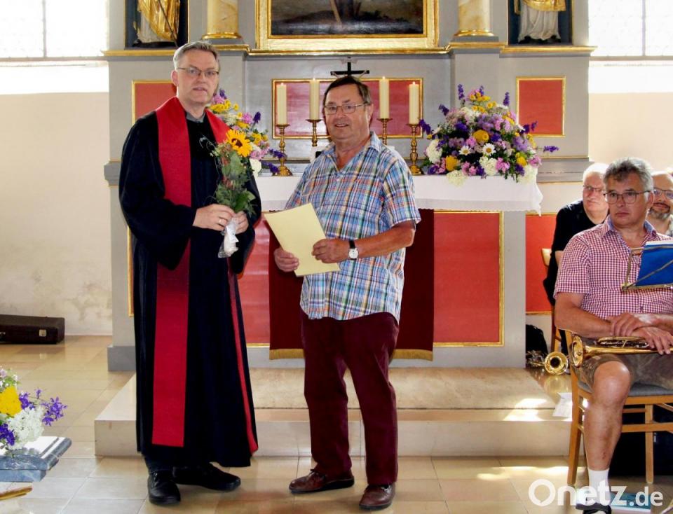 Den Kirchweihgottesdienst in der Kirche St. Ulrich in Kirchenreinbach hat Pfarrer Markus Vedder, um den langjährigen Organisten Herbert Lindner zu verabschieden.