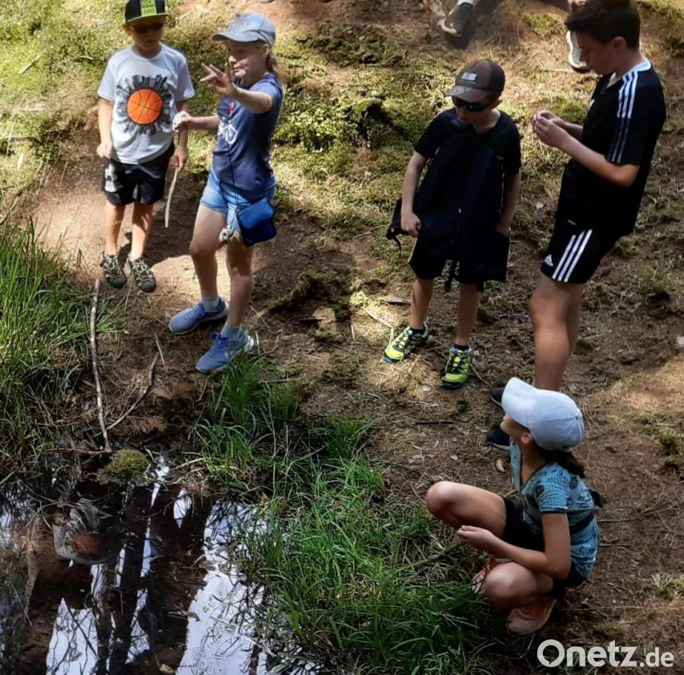 Auf dem Rückweg mussten Tierspuren zugeordnet, Murmeln gerollt werden. Hand in Hand schlängelten sie sich durch einen Hula-hoop-Reifen. An der Kapelle hatte jede Gruppe die Aufgabe sich ein Gebet auszudenken. Von ernsthaft bis lustig war alles dabei.