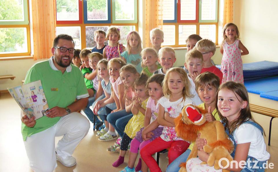 Vermieden werden sollten zu viel Fett und Fleisch. Süßigkeiten seien zwar nicht verboten, doch nach dem Verzehr sei Zähneputzen Pflicht. Und es sollte zahnfreundliches Süßes bevorzugt werden. Mitarbeiterin Silvia Kraus hatte interaktiv eine Bilder-Zahnputzgeschichte erarbeitet und mit den Kleinen das richtige Zähneputzen am großen Modell geübt. Für jedes Kind gab es zudem einen Zahnputzbeutel mit altersgerechter Zahnbürste und -pasta, ein Pflaster- und Malheft sowie Infomaterial für die Eltern.