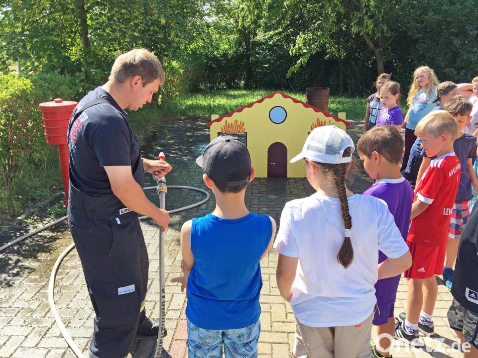 Die Kinder waren aufgeregt, als der Besuch des Feuerwehrhauses und die Besichtigung eines Feuerwehrfahrzeugs anstand. Neugierig ließen sie sich durch das Haus führen. Vom Keller über die Schlauchwaschanlage, dem Schlauchturm bis zu den Schulungs- und Aufenthaltsräumen wurde alles genau gezeigt. Die Brandschutzerzieher Karl Walberer, Daniel Albersdorfer und Justin Goß konnten die Aufmerksamkeit fesseln, denn bei der Feuerwehr ist alles sehr solide und schwer. Die Rettungsschere und der Rettungsspreizer regten die Fantasie an, wie es bei einem richtigen Einsatz wohl zuginge. Zur praktischen Brandschutzübung durfte jedes Kind mit der Spritze ein brennendes Modellhaus löschen. Dass so manches Kind ein paar Tropfen abbekam, machte den Einsatz nur toller! Für die spannenden und lehrreichen Stunden bedankten sich alle und die Kinder bekamen noch eine kleine Anerkennung und eine Urkunde überreicht. Bei so manchem keimte der Gedanke, selber aktiv der Feuerwehr beizutreten: „Super, die Feuerwehr braucht immer Nachwuchs!“