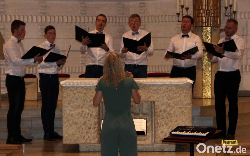 Chorleiterin Anna Gräb hatte die Sänger auf ihren Premierenauftritt gut vorbereitet und stimmlich bestens disponiert. Das begann schon mit dem professionellen Einzug und der Aufstellung: Ohne Hektik, sondern ruhig und besonnen warteten die jungen Leute auf den Einsatz.