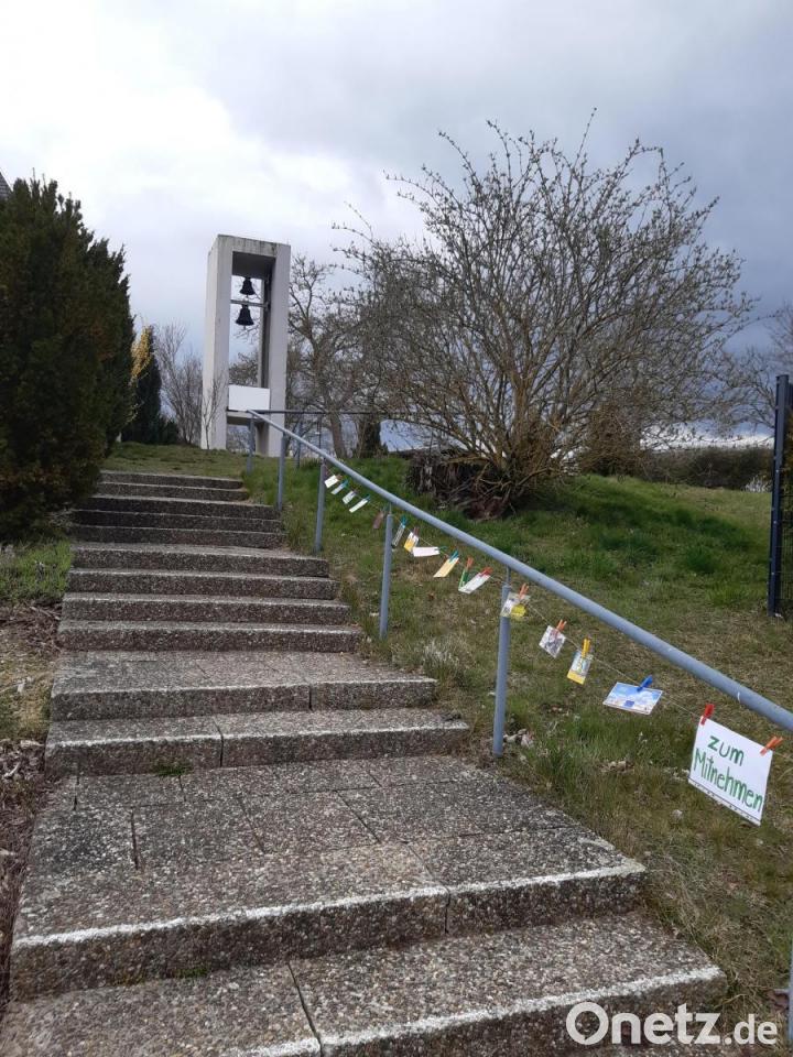 Im Gespräch erklärte Pfarrerin Utz: "Wer eine schöne Karte findet, darf sie gerne mitnehmen. Gott ist auch in schweren Zeiten da und verbringt kleine und große Wunder."