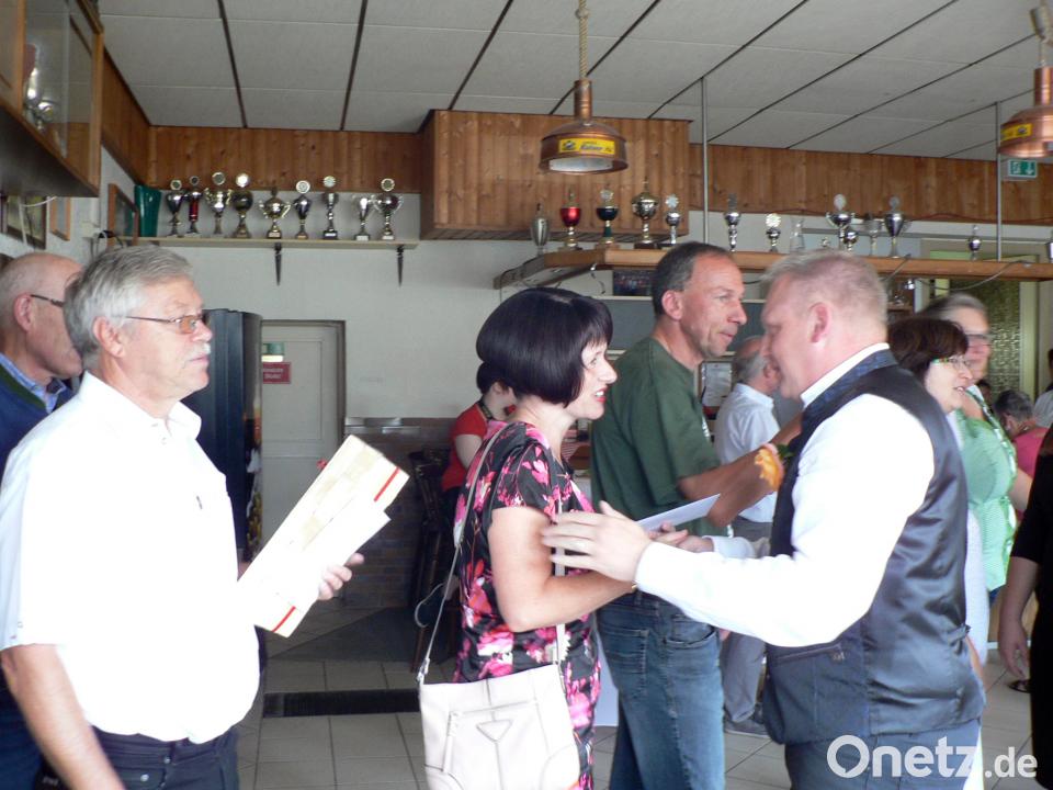 Und dann standen die Vertreter aller Vereine Schlange, um dem „Neu-Fünfziger“ zu gratulieren. Besonders freute sich Kürzinger über das Geburtstagsständchen der Blaskapelle Kirchenthumbach. Dabei wurde ihm die Ehre zuteil, das Ensemble selbst bei einem Lied zu dirigieren.