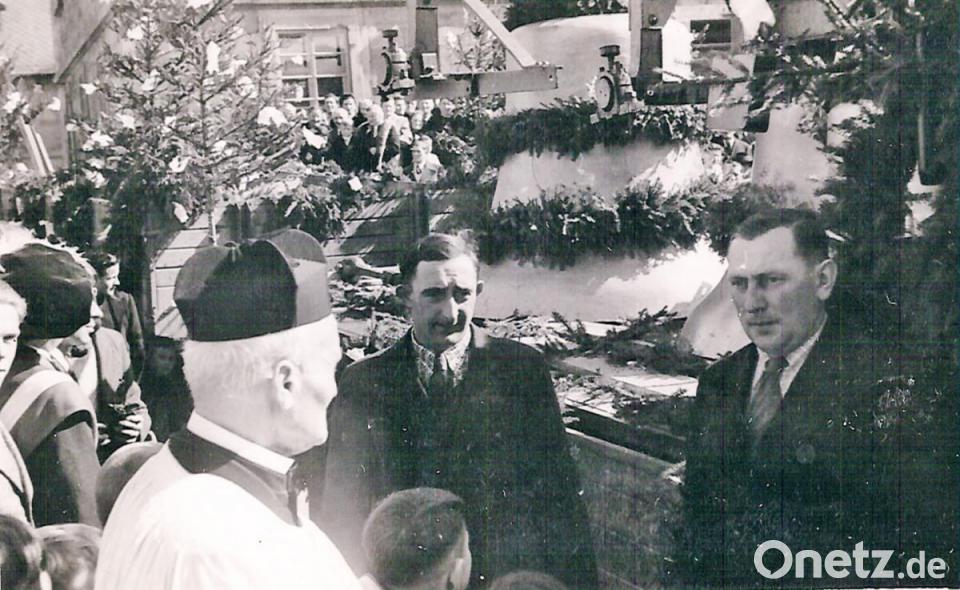 Die Weihe selbst wurde mit einem Musikstück eröffnet. Ein Mädchen der Volksschule trug einen Prolog vor, ehe Pfarrer Josef Bollmann das Wort ergriff. Der Geistliche wandte sich mit eindrucksvollen Worten an die Pfarrgemeinde. Unter dem Leitsatz "Gott zur Ehr, dem Ungläubigen zur Wehr, dem Gläubigen zur Lehr," sollen sie Glocken des Friedens sein und bleiben und nicht mehr zum Kampfe rufen. Jedem einzelnen sollen sie ein Begleiter von der Wiege bis zur Bahre, in frohen und leidvollen Stunden sein. Im Auftrag des Bischofs nahm er die feierliche kirchliche Weihe vor. Während des Aktes sang der Kirchenchor ein Lied.