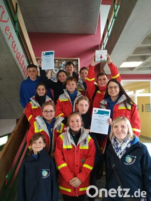 Anschließend ging es in einen Parcours, bei dem an verschiedenen Stationen allerhand Wissen über das Rote Kreuz abgefragt wurde. Am besten gefiel den Jugendlichen der Praxisteil. Dort werden Unfälle nachgestellt und die Gruppe verarztet Statisten. Hier wird auch der Notruf abgesetzt. Durch das gute Abschneiden geht es für beide Gruppen Ende Mai zum Bezirkswettbewerb nach Furth im Wald. Dort treten sie gegen die besten Gruppen aus den verschiedenen Kreisverbänden an und stellen ihr Wissen unter Beweis.