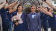 Nachdem sie sich bereits vor einem Jahr standesamtlich das Jawort gegeben hatten, traten sie nun vor den Traualtar, um sich auch das kirchliche Versprechen zu geben. Die Hochzeitsmesse hielt Pater Benedikt Röder, der die Brautleute aus seiner Zeit als Pfarrer von Kirchenthumbach kennt. Nach der Trauung wurde das Paar von vielen Verwandten, Freunden und Arbeitskollegen erwartet. Gekommen waren die Fußballer der 1. Mannschaft des SC Kirchenthumbach, wo der Bräutigam in der Abwehr eine wichtige Rolle einnimmt. Bei einem Parkourlauf mit anschließendem Torschuss musste das Brautpaar ihre sportlichen Fähigkeiten unter Beweis stellen. Ebenfalls gekommen waren die Arbeitskollegen/innen von der KSB Pegnitz, die ihre beiden Kollegen hochleben liesen. Im Anschluss fand die große Familienfeier im Liebesbier in Bayreuth statt. Das junge Paar wohnt mit Söhnchen Luis in Kirchenthumbach, in der Einliegerwohnung im Elternhaus der Braut.
