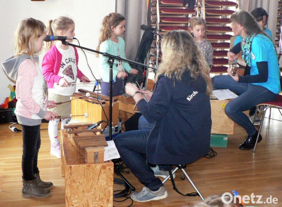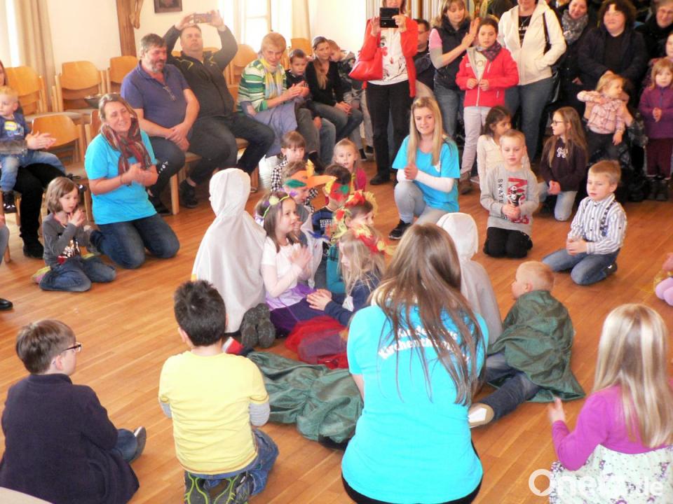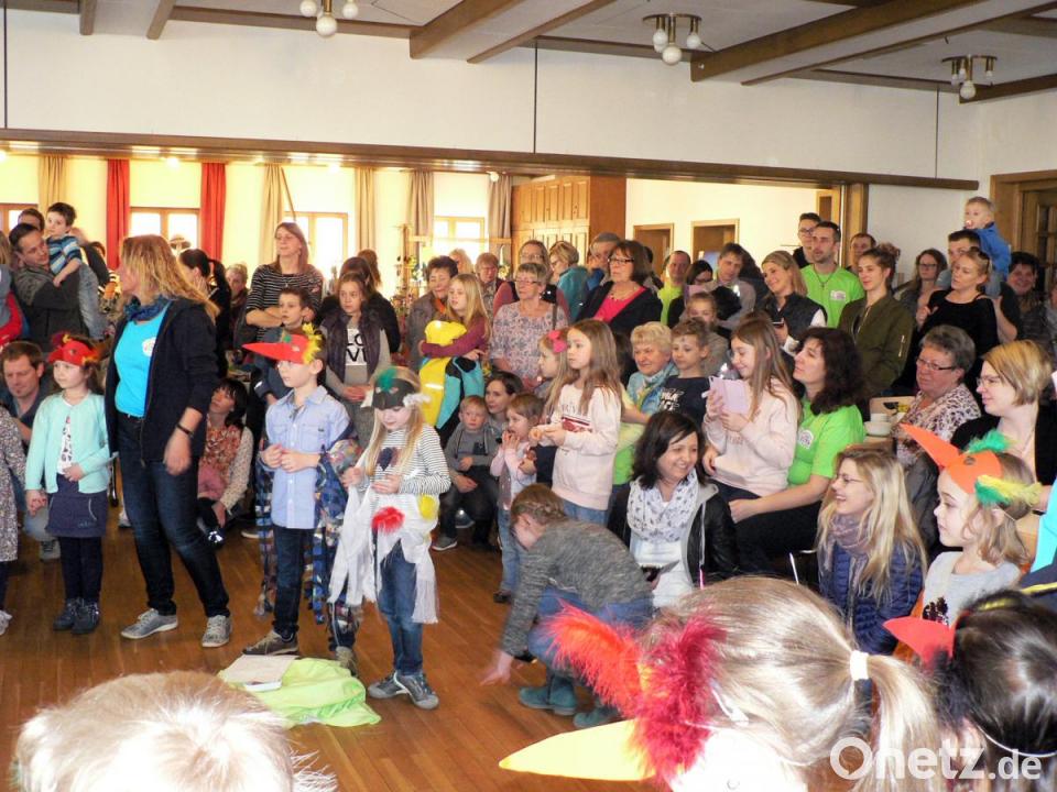 Des Weiteren hatten sie mit ihren Erzieherinnen Vogelnestkulissen und Vogelkostüme gebastelt. So verkleidet spielten und sangen die Kleinen die Geschichte von den Vogeleindern, die aus den Eiern schlüpfen, von den Vogeleltern betreut werden, flügge werden und schließlich selbst "Vogelhochzeit" feiern. Vier Vorschulkinder übernahmen mit Orff-Instrumenten den musikalischen Part.