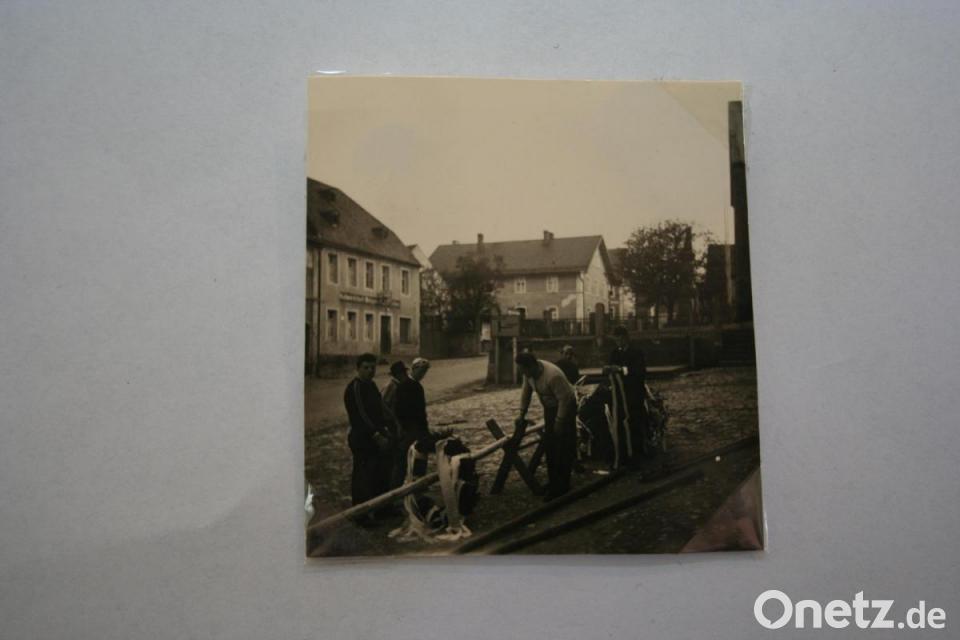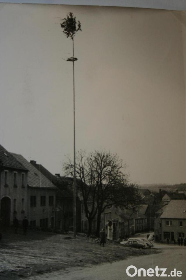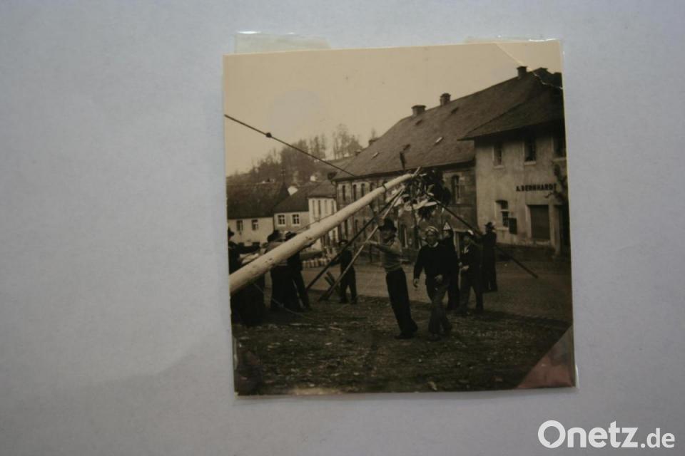 Hans Rupprecht, ("Beckn-Hans"), der Kommandant der Feuerwehr, gab die Anleitung für die Tiefe des Loches, das zu graben war, und übernahm auch das Kommando beim Aufstellen. Vorher wurde der Baum auf einen Holzbock gestützt und mit Streifen aus buntem Krepppapier geschmückt, während die Blaskapelle „Edelweiß“ den Weckruf spielte. Am Aufstellen des Maibaumes mit Muskelkraft und „Schwalben“ beteiligten sich Toni Böhm, Toni Stahl, Alfons Wilterius, Josef Dromann, Hans König und Wenzl Fenzl.