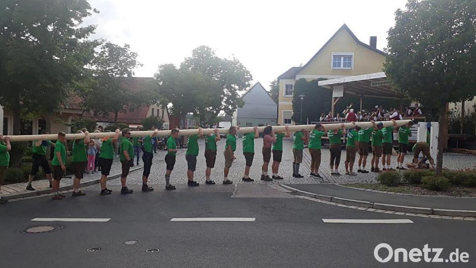 Am Freitag gegen 19 Uhr stand der Baum auf dem Turnerplatz. Danach ging es in "die Post" zum Weiterfeiern. Im kompletten Außenbereich standen die "Grünen", die in grüne T-Shirts gekleideten Mitglieder des Kirwavereins, danach auf den Bänken, stemmten Tische in die Höhe und feierten den Beginn der Kirwa.