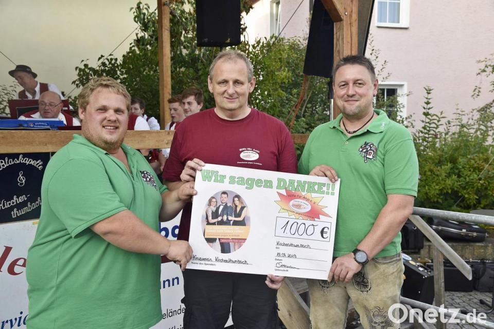 Dank der Unterstützung der Besucher und des grandiosen Einsatzes der jungen Kirwamädels wurden alle Lose verkauft. So konnten Vertreter des Kirwavereins einen Scheck über 1000 Euro an den Verein „Hilfe für Anja“ übergeben, dessen Vorsitzender Michael Sporrer sich bei Timo Müller und seinen über 70 Helfern "für die tolle Unterstützung nicht nur heute, sondern in den vergangenen 20 Jahren" bedankte. "Viele Vereine, die Geschäftswelt, Privatleute aus Kirchenthumbach und natürlich der Kirwaverein haben uns zum wiederholten Male unterstützt. Gerade in diesem Jahr, in dem wir aktuell 3800 Personen typisiert haben, sind natürlich riesige Kosten angefallen“, erklärte Sporrer.