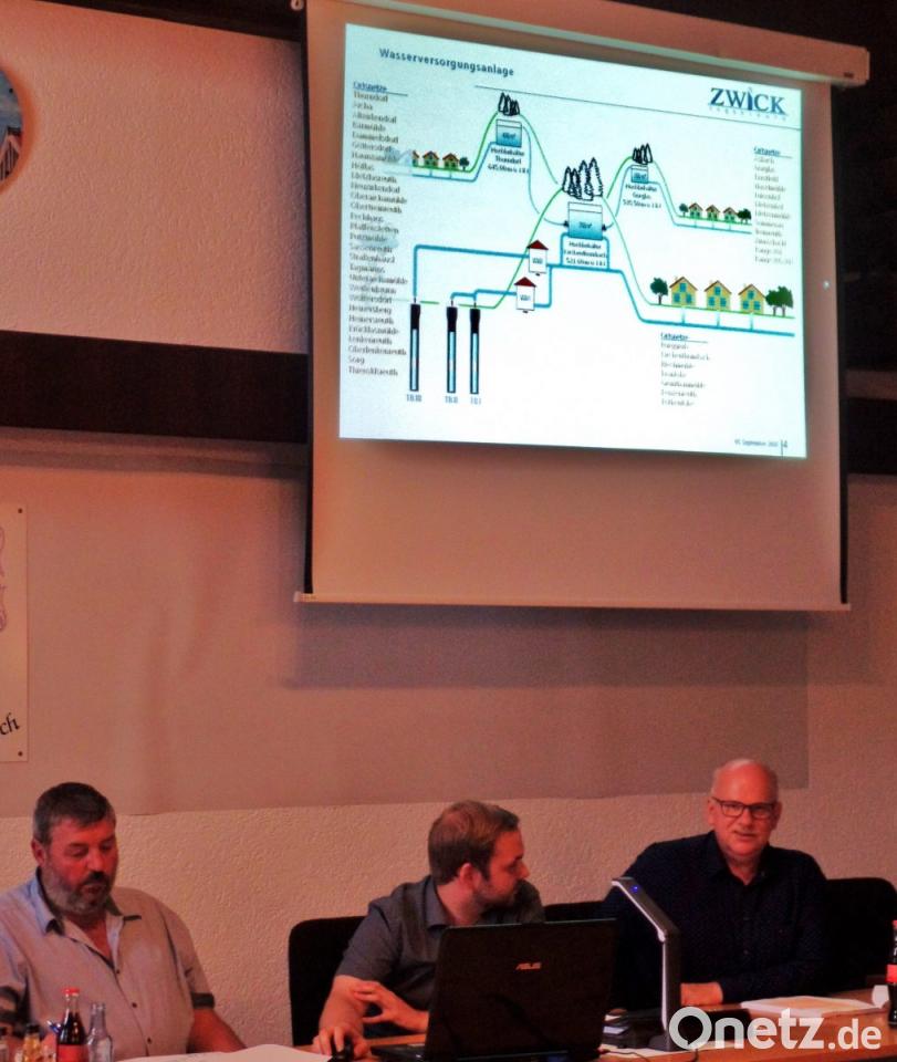 So wurde eingangs die aktuelle Situation im Versorgungsgebiet erläutert, wobei insbesondere die drei Tiefbrunnen, die beiden Wasserwerke sowie die Hochbehälter bei Görglas und Thurndorf im Mittelpunkt standen. Die Studie enthielt ebenso Zahlen und Fakten zur jährlichen Fördermenge und zum Wasserverbrauch. Bezugnehmend auf die beiden Wasserwerke empfahl Diplom-Ingenieur Kaltenecker, sich künftig für eine Aufbereitungsanlage zu entscheiden, und verwies auf den baulichen Zustand. Nach seinen Worten bestehe teilweise Sanierungsbedarf, was auch den Hochbehälter bei Görglas betrifft. In die Studie einbezogen war das 75 Kilometer umfassende Wasserleitungsnetz. Hier sollte ebenfalls eine Sanierung angestrebt werden und zwar in Abstimmung mit Kanalisierungsarbeiten.
