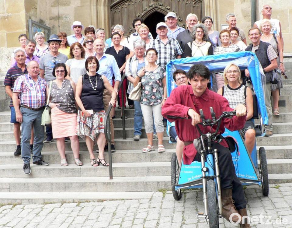 Bei der kurzweiligen einstündigen Stadtführung zeigte Georg den Oberpfälzern die schönsten Ecken der Stadt: die Herrn- und Klostergasse mit ihren wunderschönen Fachwerkhäusern, das Rathaus, die Jakobskirche und den Burggarten. Mit dabei hatte er eine Rikscha, in der abwechselnd immer zwei Personen mitfahren konnten. Danach war Zeit zur freien Verfügung. Auf dem Rückweg kehrte die VdK-Gruppe in Plech ein, wo der Ausflug gemütlich ausklang.
