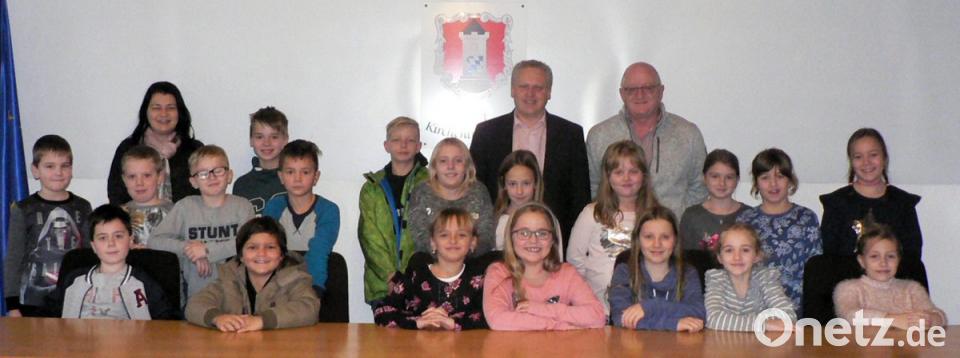 Aufgeteilt auf zwei Tage kamen die Kinder in das Verwaltungsgebäude, um Bürgermeister Jürgen Kürzinger kennenzulernen und ihm einige Fragen zu stellten. Da in der Schule gerade die Gemeinde Thema war, wollten die Mädchen und Buben vor Ort erkunden, was im Rathaus gemacht und gearbeitet wird. Zu Beginn ging es in den Sitzungssaal, in dem die Gemeinderatssitzungen stattfinden. Dort durften sie am Ratstisch Platz nehmen.