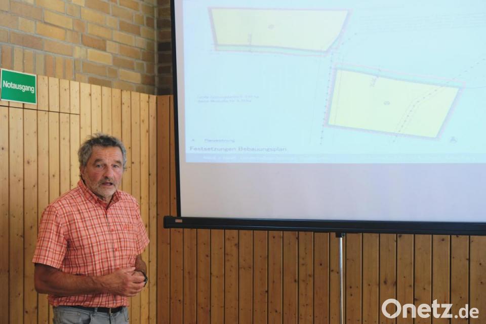 Die Kernpunkte der Bebauungsplan-Festsetzungen erläuterte Manfred Neidl. Der Landschaftsplaner verwies unter anderem auf die maximale Höhe der Modulvorrichtungen von 3,30 Metern, erläuterte die naturschutzrechtliche Vorgabe von Ausgleichsflächen, informierte über die Planungen für eine 5 Meter breite Eingrenzung der Anlage mit Heckengrün und klärte über die voraussichtliche Betriebsdauer von 35 Jahren auf.