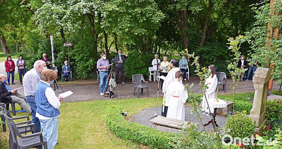 Eine Maiandacht im Freien fand im Weiler Blechmühle statt. Mit den Worten:" Eine nie gekannte Novelle hat die Welt seit Wochen erstarren lassen. Zu dir Mutter Maria haben die Menschen schon immer um die Fürsprache bei deinem Sohn gefleht, wenn Krankheit, Elend und Tod sie hilflos gemacht haben. So wollen wir uns auch heute vertrauensvoll an dich wenden," eröffnete Pfarrer Augustin Lobo die gut besuchte Gebetsstunde.