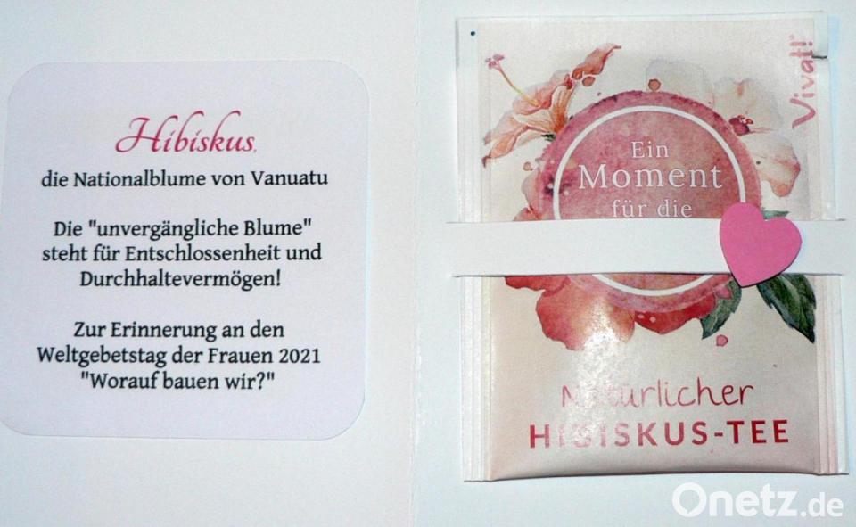 Im Mittelpunkt der Erzählungen standen drei jugendliche Mädchen: Rhetoh, Mothy und Jacklynda. Alle drei haben trotz schwieriger Schicksale durch Hartnäckigkeit und den Glauben an Gott ihren Weg gefunden. Coronabedingt konnte im Anschluss der gemeinsame Austausch nicht stattfinden. Dauth mit ihr Team hatte dafür einen Teebeutel Hibiskustee für jeden Besucher bereitgelegt. Hibiskus, die Nationalblume von Vanuatu, steht für Entschlossenheit und Durchhaltevermögen. „Vielen Dank für die Mitfeier. Machen Sie sich zuhause eine Tasse Hibiskustee, und lassen sie die Andacht nochmal auf sich wirken“, sagte die Teamleiterin am Ende der Andacht.