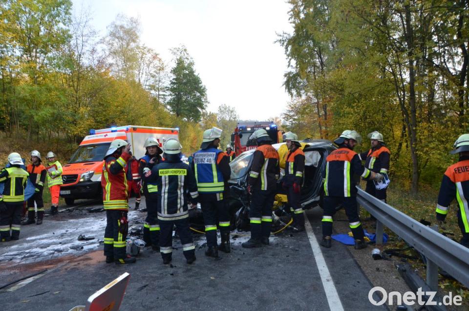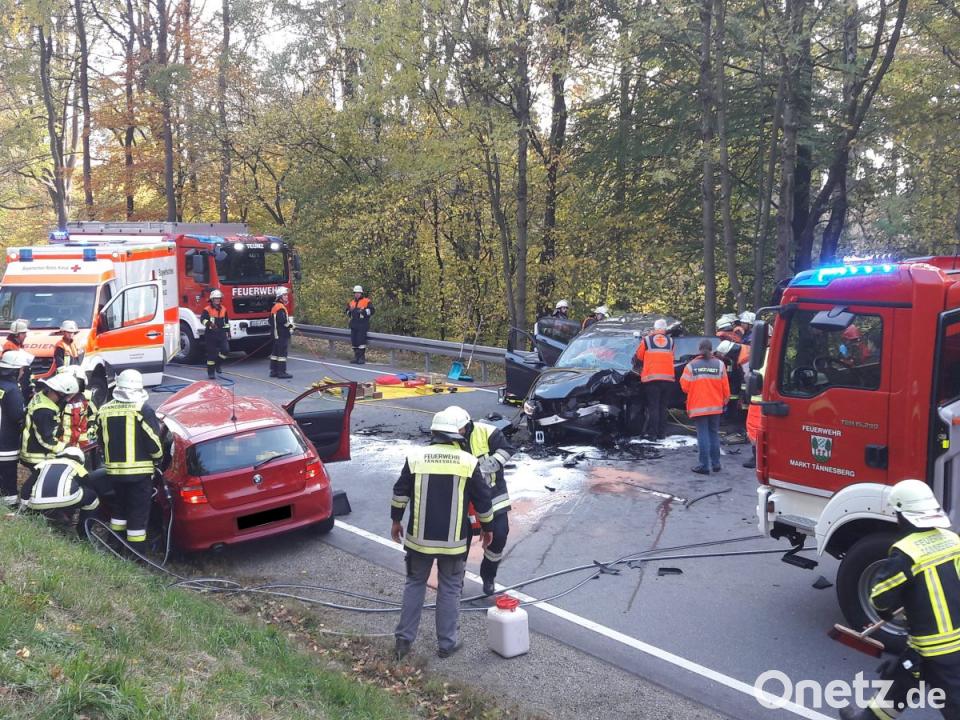 Die Fahrzeuginsassen waren so in den Wracks eingeklemmt, dass die Feuerwehrleute aus Tännesberg und Teunz schwere Gerätschaften einsetzen mussten. BRK-Einsatzleiter Marco Rappl koordinierte die Einsatzkräfte des BRK. Kreisbrandinspektor Martin Weig war mit dem Kreisbrandmeister und Tännesberger Kommandanten Christian Demleitner und dem Teunzer Kommandanten Andreas Brandstätter im Einsatz. Die Feuerwehrkräfte aus Döllnitz und Großenschwand übernahmen die Absperrung und Verkehrsleitung. Ein Sachverständiger unterstützt die Polizei bei der Klärung des Unfallhergangs. Den Schaden schätzt die Polizei auf rund 40.000 Euro. Die B 22 bleibt bis18 Uhr komplett gesperrt. Die Feuerwehrkräfte banden die auslaufenden Betriebsstoffe.