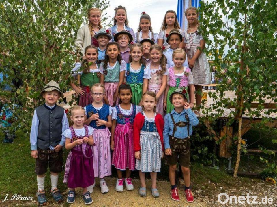 Für die Kirwaleit war es eine kurze Nacht, denn tags darauf läuteten schon um 8.45 Uhr die Kirchenglocken zum Festdienst auf dem Dorfplatz. Dem schloss sich ein Frühschoppen mit Mittagstisch im Festzelt an. Mit der Band D'Hopfenzupfer ging es anschließend auf große Fahrt, um die Moidln einzuholen. An der letzten Station wurde noch einmal eine Runde gedreht, bevor es zum Festplatz ging, um den Baum auszutanzen. Auch am Sonntag durften die Kinderkirwapaare nicht fehlen. Die jungen Burschen und Moidln tanzten zu bayerischer Musik, die vielen Zuschauer applaudierten dem Nachwuchs lautstark.