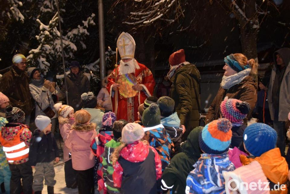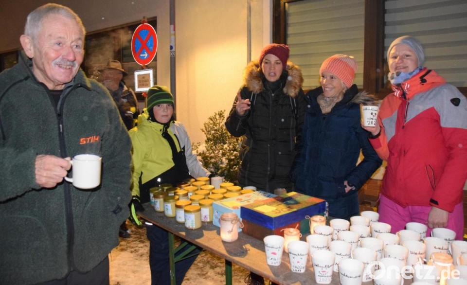 Nach musikalischen Grüßen des Posaunenchors eröffnete Bürgermeister Jörk Kaduk den Adventsmarkt auf dem Marktplatz in Königstein. Das Besondere an diesem Markt ist, dass er nur einmal für zwei Stunden öffnet und fast alle Stände von Einheimischen betrieben werden. Zum ersten Mal dabei war heuer das Haus Rosenau der Regens-Wagner-Stiftung, das Metall- und Holzarbeiten mit einer individuellen Laserschrift anbot. Einen Hausverkauf gibt es seit kurzem in Königstein im Haus Rosenau dienstags ab 13 Uhr mit Produkten aus eigener Herstellung vom Maurushof und den Werkstätten in Michelfeld. Ebenfalls zum ersten Mal dabei war die Grundschule Königstein. Der Elternbeirat verkaufte Honig von den Schulbienen sowie selbst verzierte Tassen von den Grundschulkindern. Die Tassen konnten sich die Gäste gleich in der Nähe mit Glühwein auffüllen lassen. Der Erlös ist für den Kauf einer Kletterwand für die Schule gedacht. Die Kindergartenkinder warteten derweil ungeduldig auf den Nikolaus (Markus Arnold) und sangen Lieder, bis er endlich kam und sie bescherte.