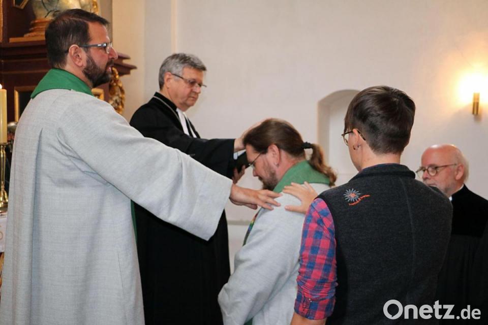 Zur Begrüßung im neuen Amt gab es für die Gemeinde den Hinweis: „Liebe Gemeinde, lasst euch den Dienst eures Diakons gefallen, steht ihm bei und helft ihm.“ Mit Marlen Aures und Pfarrer M. Ahnert als Assistenten wurde danach Bernd Deyerl eingesegnet. Die erste Predigt vor der Gemeinde bezog sich auf Zachäus aus Lukas 19. Kapitel.
