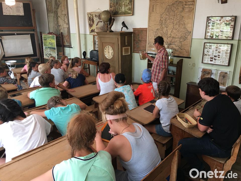 Ein bekanntes Gesicht sahen die Kinder im 1. Bayerischen Schulmuseum in Rosenberg wieder. Herbert Übelacker, bis vor einem Jahr als Rektor in Königstein tätig, ließ sie auf den historischen Schulbänken Platz nehmen. Unterrichtsmaterialien und Bücher, Schulranzen, Schreibtafeln und Landkarten von einst stießen auf großes Interesse. Dass damals in den Klassenzimmern nicht nur getrennt nach Mädchen und Jungen, sondern auch noch nach katholisch und evangelisch unterrichtet wurde, hörten sie sehr erstaunt. Ein Kinoabend an einer extra aufgebauten Leinwand auf der Liegewiese des Naturbads krönte den erlebnisreichen Tag.