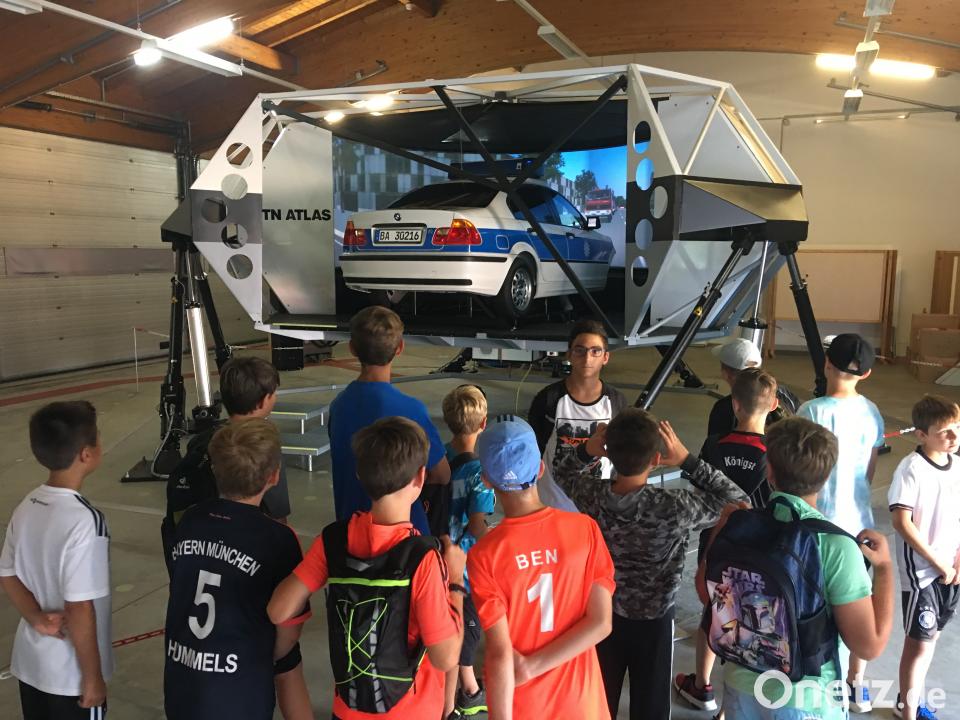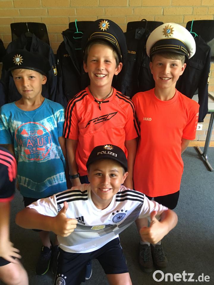 Am zweiten Tag weckte eine Kuhglocke morgens um 7 Uhr die Lagerbewohner im Naturbad. Nach dem Frühstücksbuffet im Badrestaurant wartete die Bereitschaftspolizei in Sulzbach-Rosenberg auf sie. Gespannt schauten sich die Besucher die Trainingshalle für Selbstverteidigung, den Fahrsimulator, die Schießanlage oder die Schwimmhalle an. Nach einem realistisch nachgestellten Polizeieinsatz mit der Festnahme eines Reifenstechers zweifelten einige Kinder, ob das jetzt wirklich "nur Show" gewesen sei. Manche probierten dann noch Schutzausrüstungen der Polizei an. Eingepackt und gepanzert bis zum Kopf, waren sie froh, diese bei der sommerlichen Hitze wieder vom Leib zu haben.
